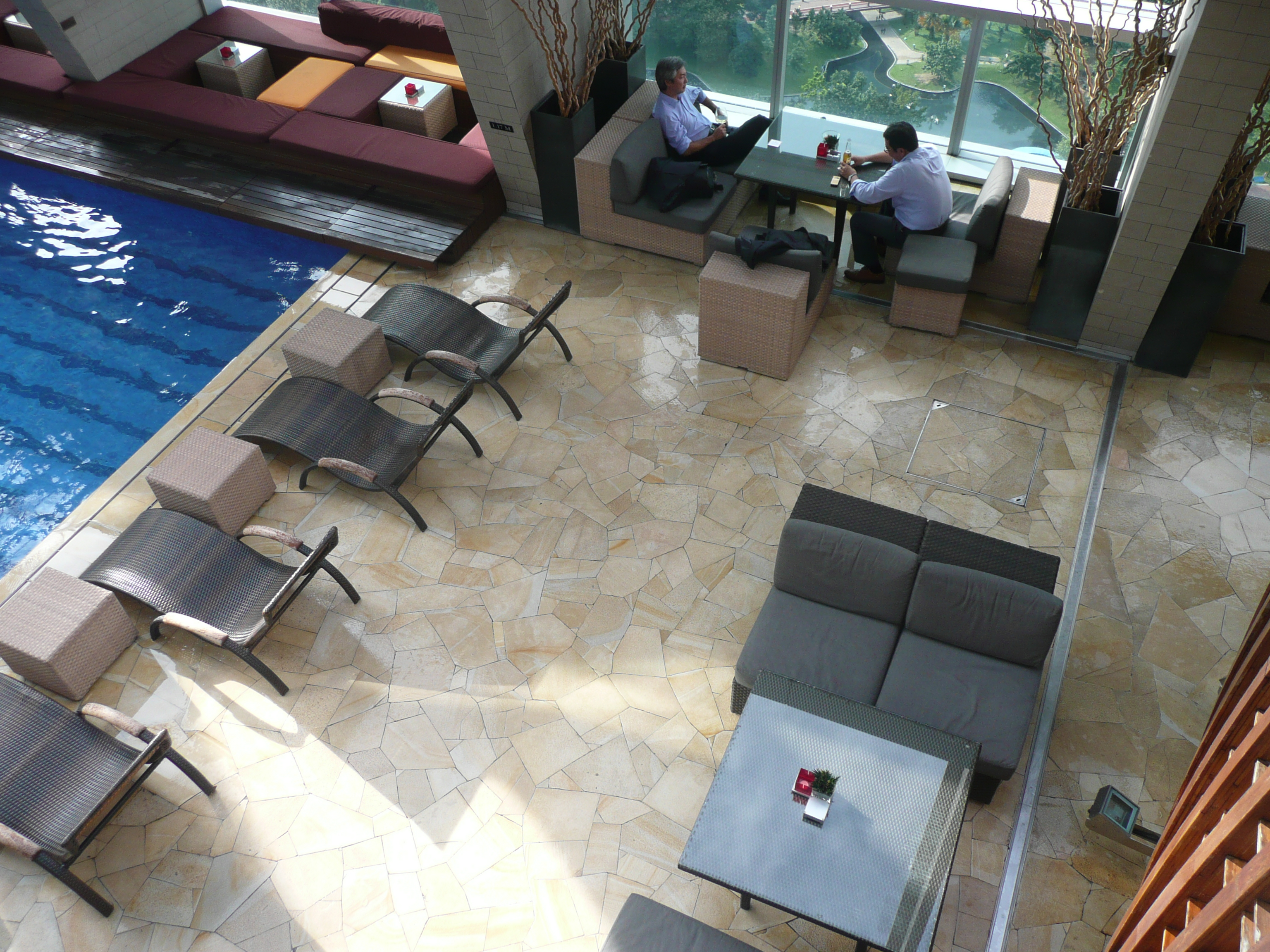 Durch seine Strapazierfähigkeit und Widerstandsfähigkeit gegenüber Witterungseinflüssen ist türkischer Travertin ideal für Außenanlagen wie Terrassen, Gartenwege, Fassadenverkleidungen und Poolumrandungen.